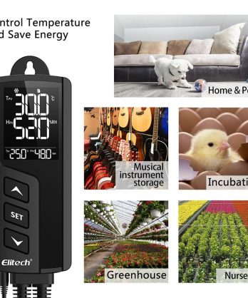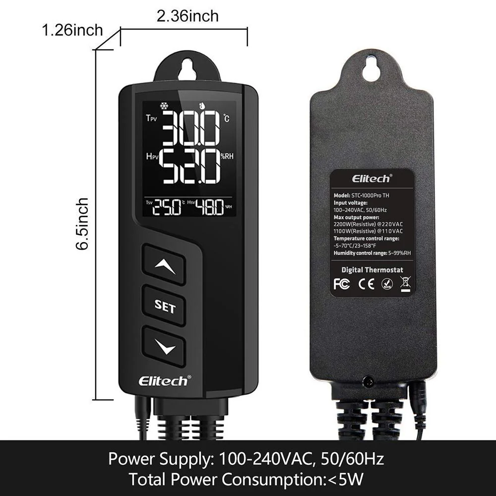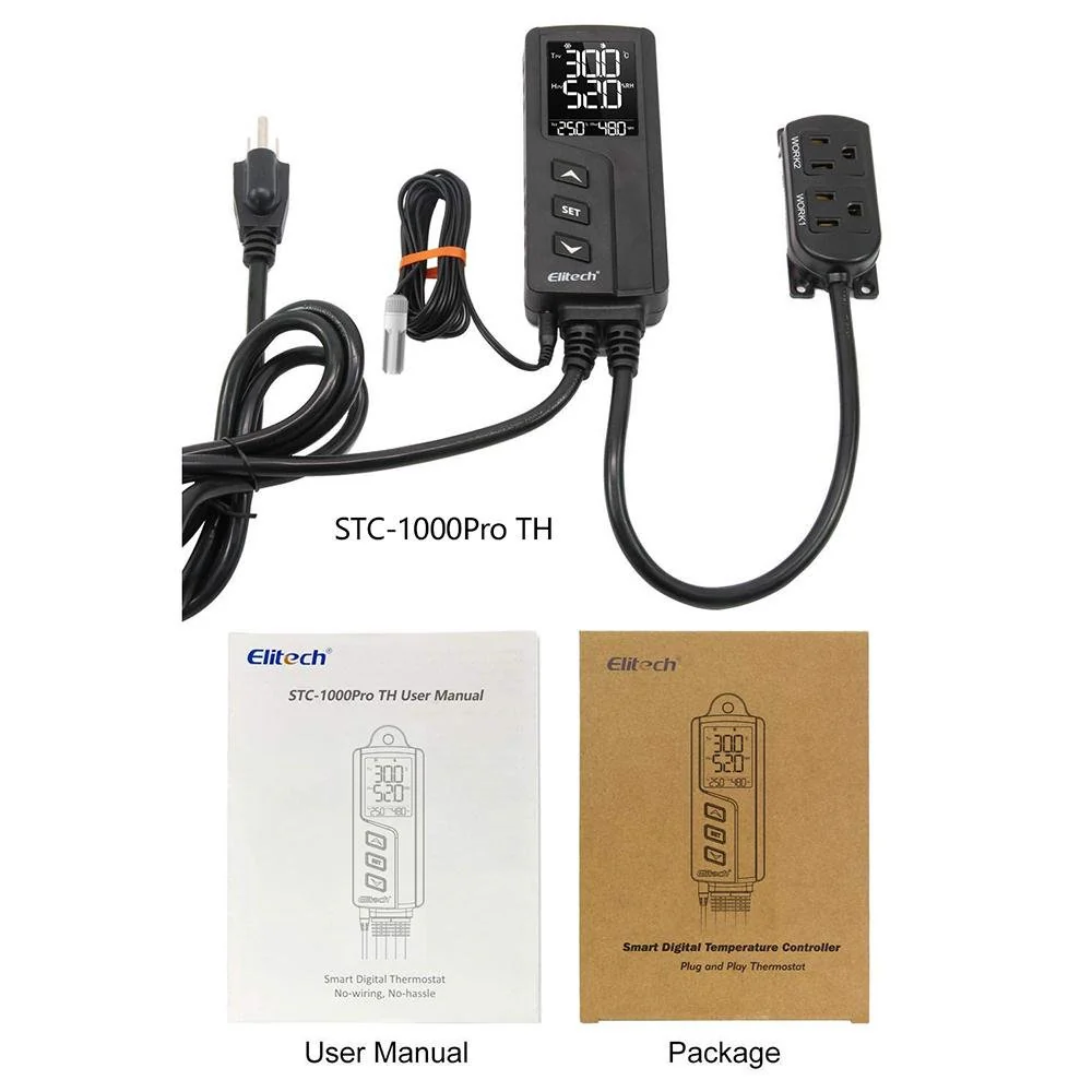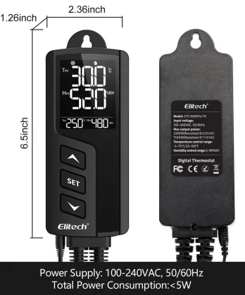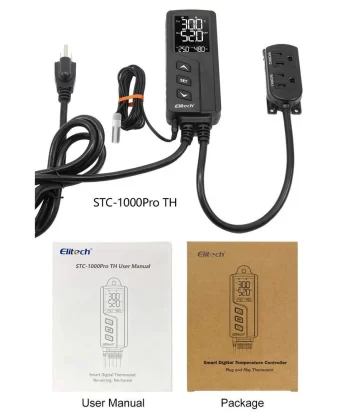 Elitech STC-1000WiFi-TH là phiên bản không dây của STC-1000Pro-TH, nó là một bộ điều khiển nhiệt độ và độ ẩm tích hợp plug and play. Đầu dò nhiệt độ và độ ẩm tích hợp được sử dụng và hai ổ cắm đầu ra được kết nối trước để kiểm soát nhiệt độ và độ ẩm cùng một lúc.