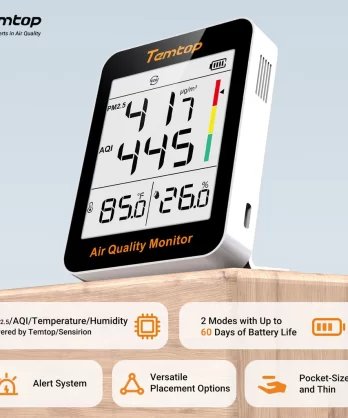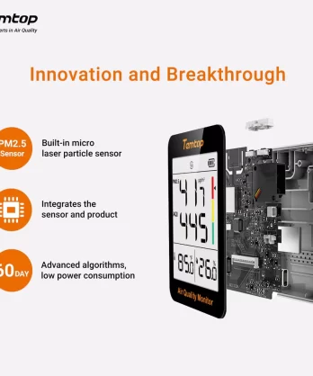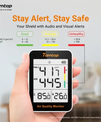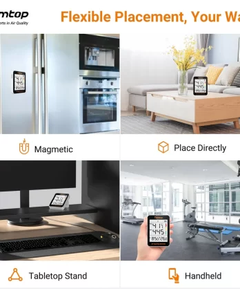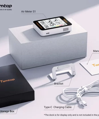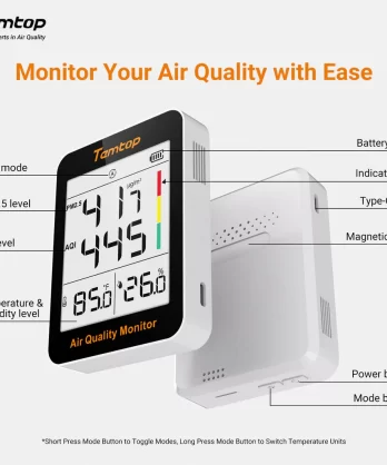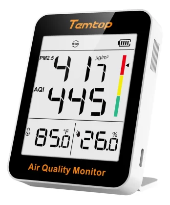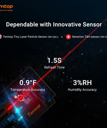 - Đồng hồ đo nhiệt độ kỹ thuật số của chúng tôi sử dụng hai cảm biến – cảm biến nhiệt độ và độ ẩm có độ chính xác cao và cảm biến hạt laser chuyên nghiệp
