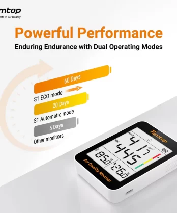 Thiết bị được thiết kế nhỏ gọn, dễ sử dụng với màn hình hiển thị rõ nét, cho phép theo dõi các chỉ số theo thời gian thực. Temtop S1 phù hợp để sử dụng tại gia đình, văn phòng hoặc các không gian kín cần đảm bảo chất lượng không khí. Ngoài ra, máy có chế độ tiết kiệm năng lượng giúp kéo dài tuổi thọ pin, đảm bảo hoạt động liên tục mà không cần lo lắng về nguồn điện.