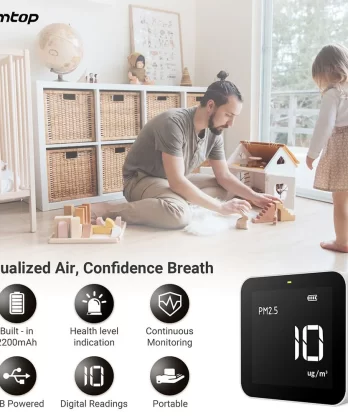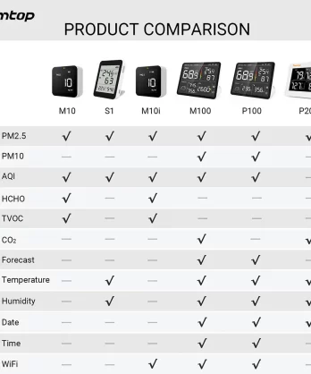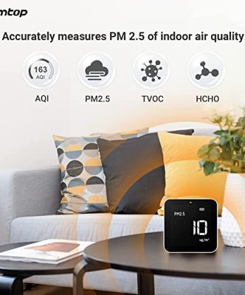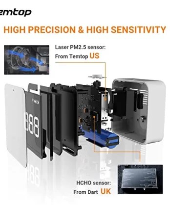 - ĐA CHỨC NĂNG 4 TRONG 1: Đo PM2.5, AQI, TVOC và HCHO, với cảm biến hạt laser thế hệ thứ 3 nhạy cảm Temtop và cảm biến điện hóa Dart.