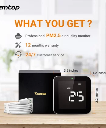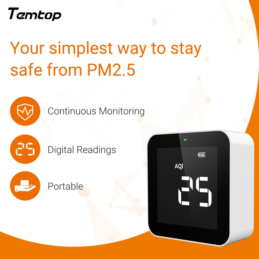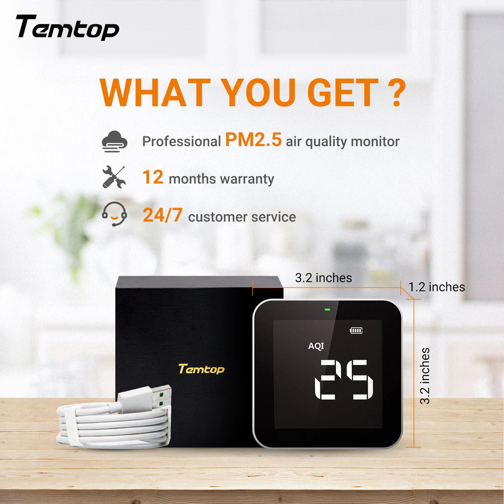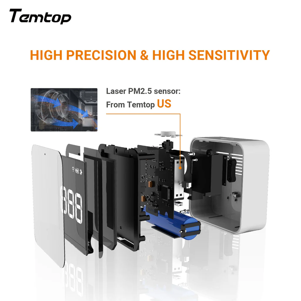 - 10 NĂM R&D ở CẢM BIẾN PM 2.5: Máy phân tích chất lượng không khí này sử dụng cảm biến hạt laze cấp độ chuyên nghiệp do Temtop có trụ sở tại Thung lũng Silicon phát triển để giúp bạn phát hiện các mối đe dọa tiềm ẩn trong không khí theo thời gian thực và chính xác.