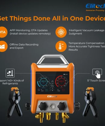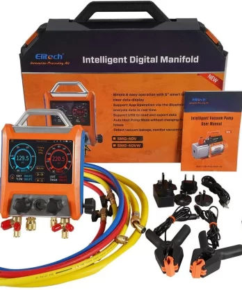 Elitech EMG-40V là thiết bị đo kỹ thuật số thông minh 4 van, tích hợp màn hình cảm ứng 5 inch. Thiết bị hỗ trợ đo áp suất, chân không và nhiệt độ một cách nhanh chóng, dễ thao tác qua màn hình cảm ứng hoặc kết nối điện thoại thông minh. Phù hợp cho công việc kiểm tra, bảo trì hệ thống lạnh và bơm nhiệt (HVAC/R) hàng ngày.