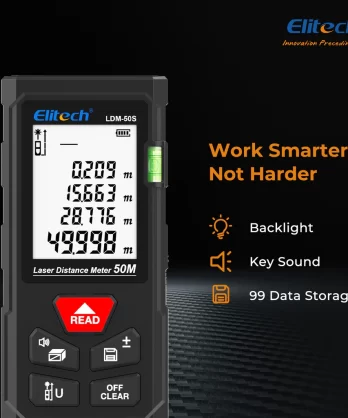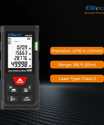 Elitech LDM-50S cung cấp khả năng đo nhanh và chính xác lên đến 165 feet (50 mét) với độ chính xác ±2mm. Được thiết kế dành cho các công việc cải tạo nhà cửa và dự án DIY, thiết bị hỗ trợ nhiều chế độ đo như diện tích, thể tích, đo liên tục và chế độ Pythagore.