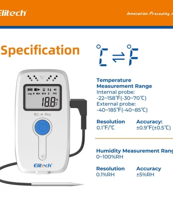 Elitech RC-4 Pro là thiết bị ghi dữ liệu dùng để ghi lại nhiệt độ và độ ẩm trong quá trình vận chuyển thực phẩm, dược phẩm, hóa chất và các sản phẩm khác. Thiết bị được sử dụng rộng rãi trong nhiều khâu vận chuyển như kho bãi và hậu cần, bao gồm: container, xe tải lạnh, thùng lạnh, kho lạnh, v.v.